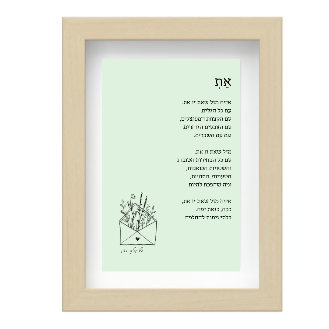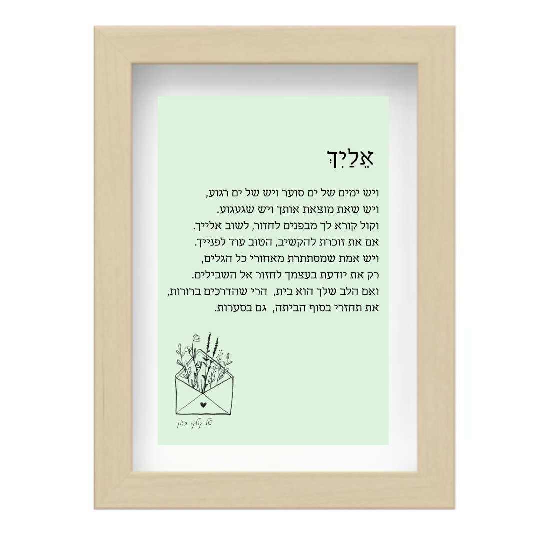 תודה רבה על משלוח מהיר ובעיקר על תוכן כל כך נוגע. חברה שלי התרגשה מאוד ואמרה שזו המתנה הכי טובה עד כה שהיא קיבלה ללידה